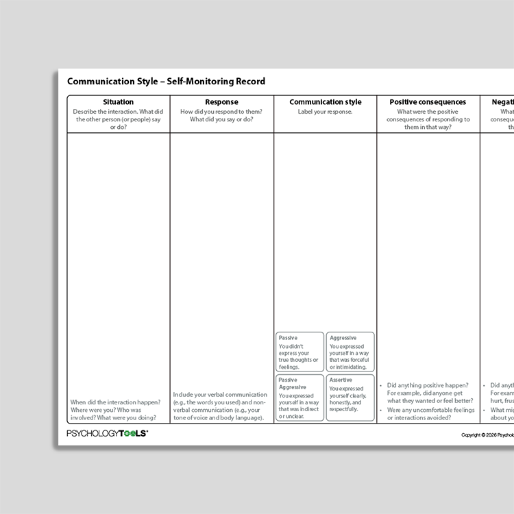 New Worksheet: Communication Style – Self-Monitoring Record