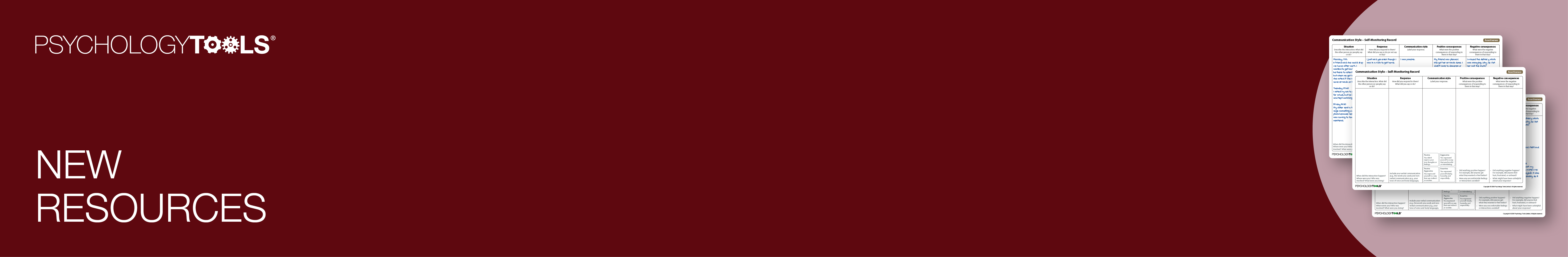 We’re pleased to introduce a new worksheet: Communication Style – Self-Monitoring Record. It helps clients notice what happens during interactions (what they said, how they said it, and what the results were) so that therapy can focus on making communication more effective.