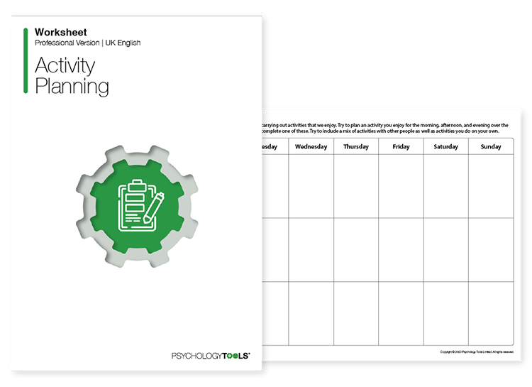 The Activity Planning worksheet assists clients in scheduling activities to enhance mood, mastery, and well-being, and is particularly beneficial for those experiencing depression.