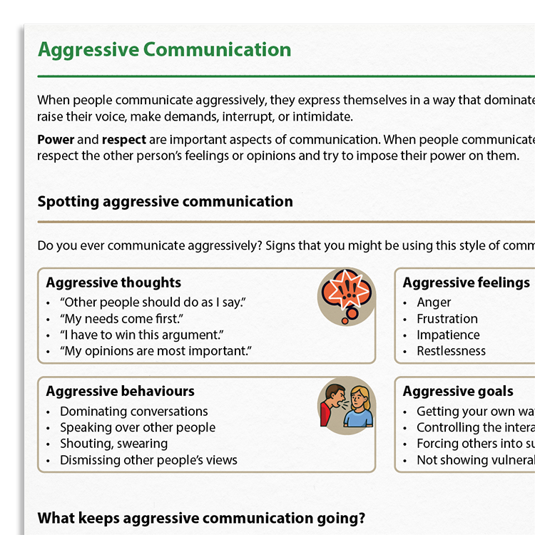 Use this resource to highlight the problems associated with aggressive communication and highlight more helpful styles, such as assertiveness.