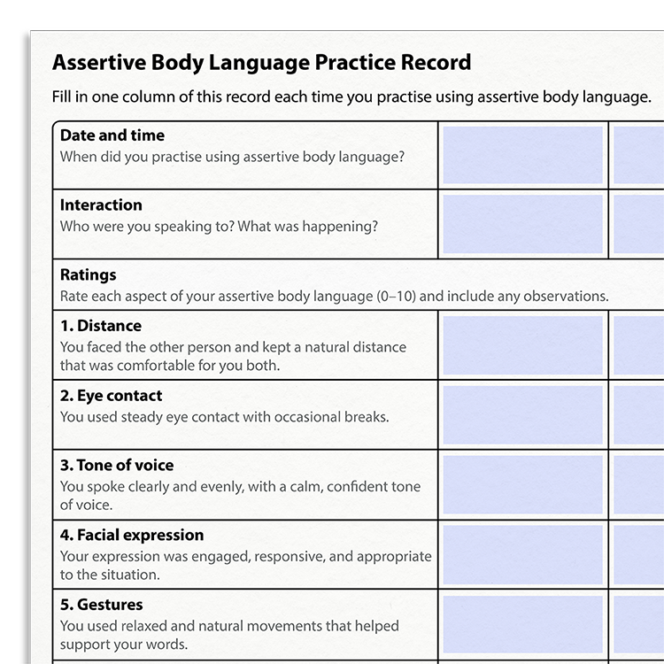 Helps clients identify and track their use of assertive body language.