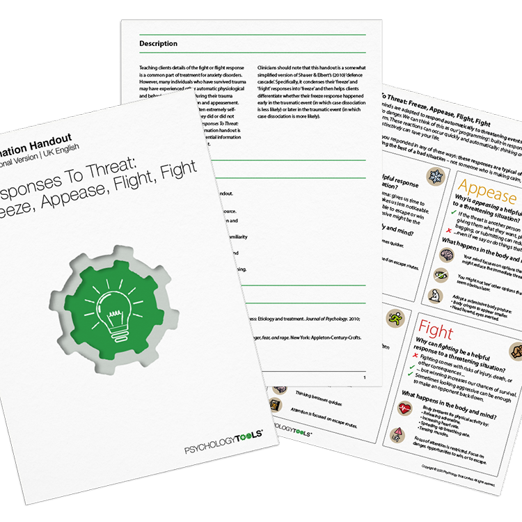 The Responses To Threat: Freeze, Appease, Fight, Flight information handout is designed to give clients essential information about common responses to threat.