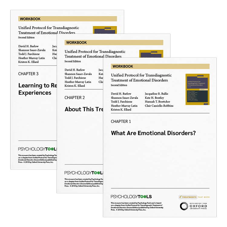 - Unified Protocol for Transdiagnostic Treatment of Emotional Disorders (Second Edition): Workbook is the companion to this therapist guide. It will help your patients to become active participants in their treatment and learn how to confront difficult thoughts and emotions, both independently and with the support of a therapist.